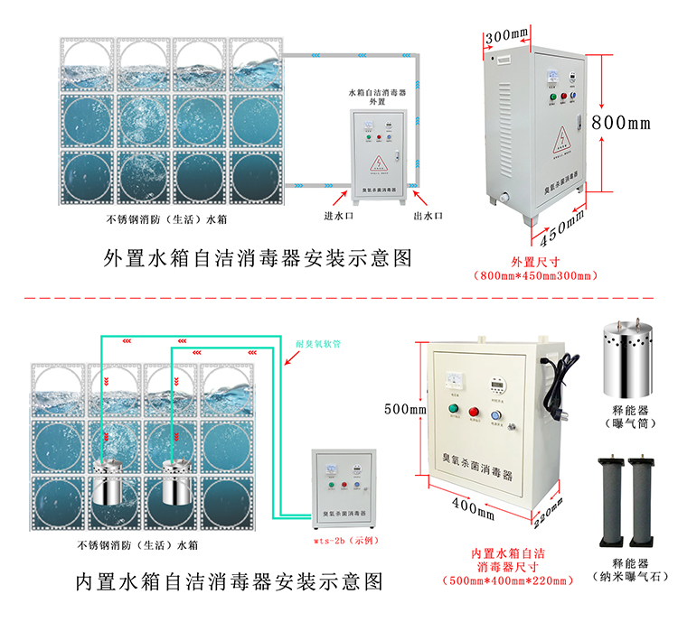 水箱自潔消毒器除甲醛內(nèi)置式外置式臭氧發(fā)生機(jī)殺菌滅藻空氣除菌