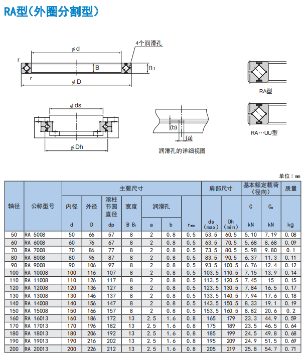 THK超薄外圈分割型交叉滾子軸承RA7008UUCC0