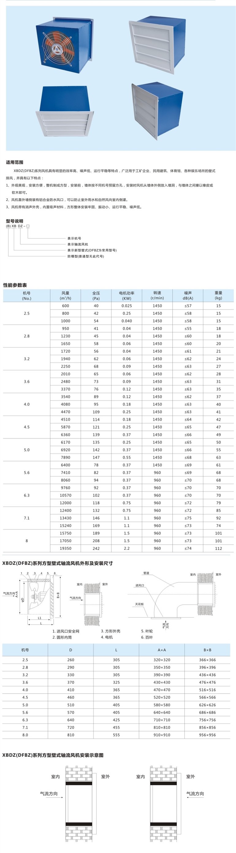 高壓配電間DFBZ-I-2.8低噪音方形壁式軸流排風(fēng)機(jī)Q=1540m3/h P=50Pa N=0.04KW