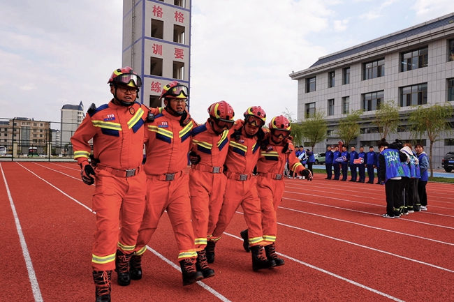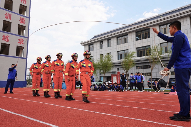10月11日,由內(nèi)蒙古鄂爾多斯市消防救援支隊主辦,鄂爾多斯職業(yè)學院等院校承辦的2023年鄂爾多斯市第一屆高校微型消防站消防運動會正式拉開帷幕。來自全市消防安全重點單位的3個代表隊近80余人參加包括五人三足、4×100米水帶接力賽、原地著滅火服操、著滅火服跳大繩等比賽項目,旨在進一步提高各微型消防站積極參與消防工作的熱情,增強公眾消防安全意識和防滅火的技能。