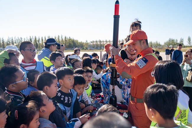 “叔叔,這個風(fēng)力滅火機(jī)怎么使用啊?”“我來教你,先打開這個熄火開關(guān),然后再打開阻風(fēng)門桿、踩住支架,最后迅速拉起動繩……”隨著“隆”的一聲,風(fēng)力滅火機(jī)成功啟動,小朋友看著馬力十足的機(jī)器,激動萬分地說道:“我以后也要當(dāng)消防員!”