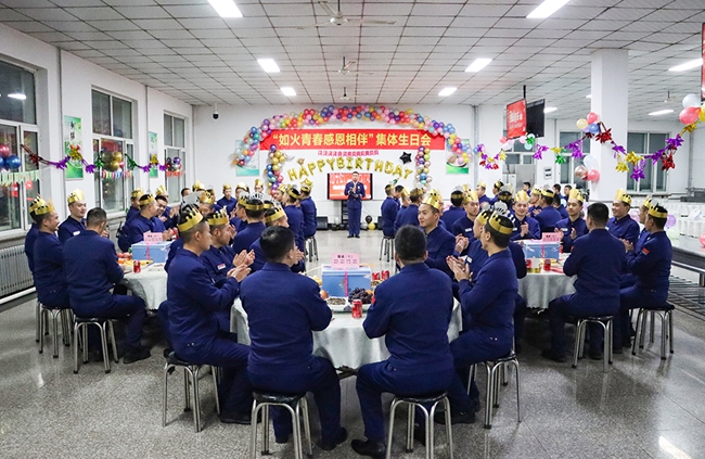 近日,黑龍江省森林消防總隊(duì)新訓(xùn)大隊(duì)食堂熱鬧非凡,大隊(duì)為本月過(guò)生日的60余名新消防員舉辦集體生日會(huì)。活動(dòng)現(xiàn)場(chǎng),燭光與歡笑交融,祝福與愿望交織,令“新藍(lán)”終生難忘。