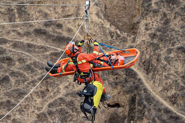 此次訓(xùn)練以模擬駐地慶陽市子午嶺林區(qū)內(nèi)群眾不慎墜山,急需救援為背景開展。消防員采用t型救援系統(tǒng)對受傷人員進(jìn)行緊急醫(yī)療救援,隨后將被困人員轉(zhuǎn)移至安全地帶的方式開展?fàn)I救。