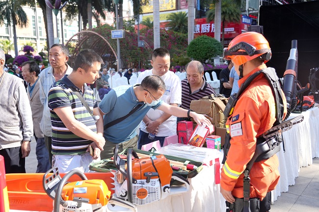 在市中心廣場(chǎng),快反森林消防水車、宿營車、防火宣傳車、全地形水泵車等車輛一一排開,現(xiàn)場(chǎng)群眾邊走邊看,不時(shí)向現(xiàn)場(chǎng)工作人員詢問車輛裝備性能和主要用途。
