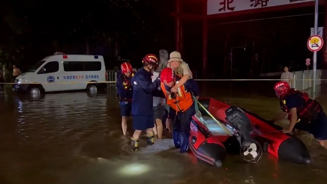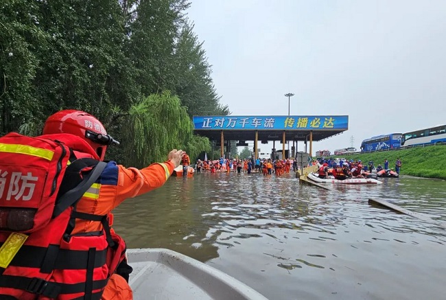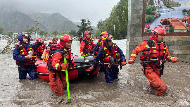 7月29日19時至8月3日8時,北京市消防部門共出動消防救援人員9445人次、消防車1549車次、舟艇340艇次參與強降雨搶險救援行動。在受災(zāi)較重的房山、門頭溝、昌平等地區(qū),消防救援人員連夜奮戰(zhàn),保障群眾安全。