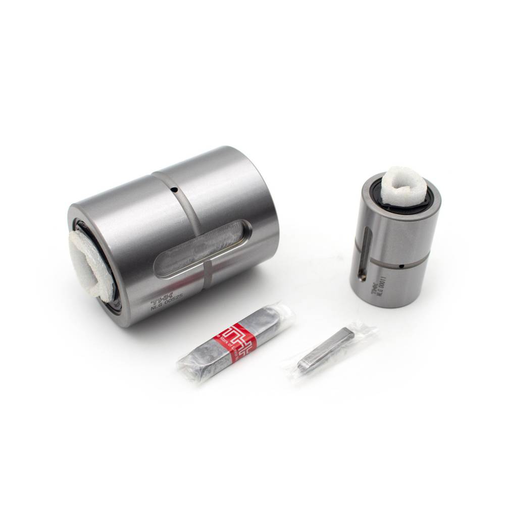 高扭矩滾珠花鍵通對過單個花鍵母施加預(yù)壓,使旋轉(zhuǎn)方向間隙為零,從而提高剛性。 像具有圓弧溝槽或哥德式溝槽的傳統(tǒng)型滾珠花鍵一樣,施加預(yù)壓并不需要將2個花鍵母在圓周方向相互 扭轉(zhuǎn)方可使用,從而容易實現(xiàn)小型化設(shè)計。