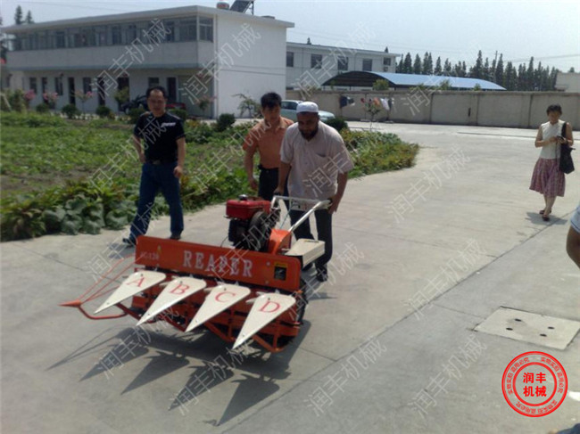 配12-20匹的手扶拖拉機就可使用,可以收割水稻,三麥 辣椒 玉米 谷子等單棵直立作物.每小時收割6-9畝.