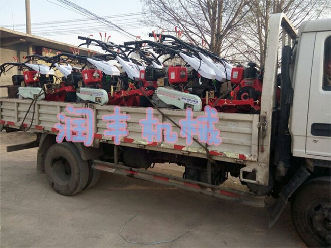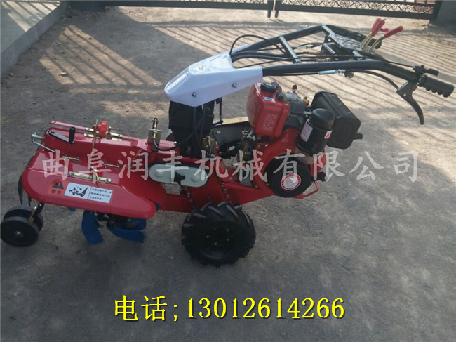 雙輪田園管理機,它包括機架、可調(diào)高低扶手,機架上設(shè)有(風(fēng)冷或水冷)柴油機或汽油機、機架和扶手上設(shè)置有變速箱,變速箱的輸出軸上設(shè)置有能夠沿軸移動的驅(qū)動輪或鏈軌.傳動方式主要有:全齒輪傳動、皮帶傳動、鏈條傳動三種傳動方式.該機具有重量輕,油耗低、相對功率大,結(jié)構(gòu)緊湊、機動性強、操縱輕便靈活的特點。可爬坡、越埂、階梯性強。廣泛適用于平原、山區(qū)、丘陵的旱地、水田、果園、菜地、煙地的深旋耕、淺旋耕、犁耕。配上相應(yīng)機具可進行旱地旋耕、水田旋耕、抽水、開溝、噴淋、噴藥除草碎土等作業(yè),還可牽引拖車進行短途運輸,是大中型農(nóng)機無法媲美的多功能田園管理機,工作穩(wěn)定、使用壽命長、維修方便等特點。是進入農(nóng)民家庭理想的田園管理機。