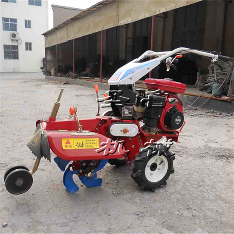 本機器包括機架、可調(diào)高低扶手,機架上設(shè)有(風(fēng)冷或水冷)柴油機或汽油機、機架和扶手上設(shè)置有變速箱,變速箱的輸出軸上設(shè)置有能夠沿軸移動的驅(qū)動輪或鏈軌.傳動方式主要有:全齒輪傳動、皮帶傳動、鏈條傳動三種傳動方式.該機具有重量輕,油耗低、相對功率大,結(jié)構(gòu)緊湊、機動性強、操縱輕便靈活的特點??膳榔隆⒃焦?、階梯性強。廣泛適用于平原、山區(qū)、丘陵的旱地、水田、果園、菜地、煙地的深旋耕、淺旋耕、犁耕。配上相應(yīng)機具可進行旱地旋耕、水田旋耕、抽水、開溝、噴淋、噴藥除草碎土等作業(yè),還可牽引拖車進行短途運輸,是大中型農(nóng)機無法媲美的多功能田園管理機,工作穩(wěn)定可靠、使用壽命長、維修方便等特點。是進入農(nóng)民家庭最理想的田園管理機。