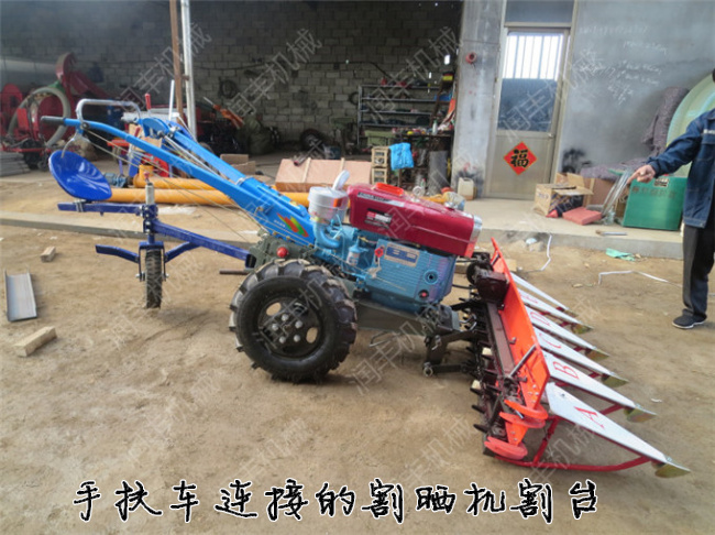 配12-20匹的手扶拖拉機就可使用,可以收割水稻,三麥?辣椒?玉米?谷子等單棵直立作物.每小時收割6-9畝.