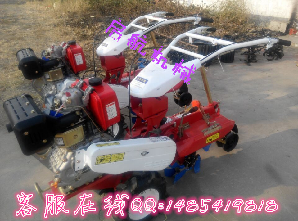 本機(jī)器包括機(jī)架、可調(diào)高低扶手,機(jī)架上設(shè)有(風(fēng)冷或水冷)柴油機(jī)或汽油機(jī)、機(jī)架和扶手上設(shè)置有變速箱,變速箱的輸出軸上設(shè)置有能夠沿軸移動(dòng)的驅(qū)動(dòng)輪或鏈軌.傳動(dòng)方式主要有:全齒輪傳動(dòng)、皮帶傳動(dòng)、鏈條傳動(dòng)三種傳動(dòng)方式.該機(jī)具有重量輕,油耗低、相對(duì)功率大,結(jié)構(gòu)緊湊、機(jī)動(dòng)性強(qiáng)、操縱輕便靈活的特點(diǎn)??膳榔隆⒃焦?、階梯性強(qiáng)。廣泛適用于平原、山區(qū)、丘陵的旱地、水田、果園、菜地、煙地的深旋耕、淺旋耕、犁耕。配上相應(yīng)機(jī)具可進(jìn)行旱地旋耕、水田旋耕、抽水、開溝、噴淋、噴藥除草碎土等作業(yè),還可牽引拖車進(jìn)行短途運(yùn)輸,是大中型農(nóng)機(jī)無法媲美的多功能田園管理機(jī),工作穩(wěn)定可靠、使用壽命長(zhǎng)、維修方便等特點(diǎn)。是進(jìn)入農(nóng)民家庭理想的田園管理機(jī)。