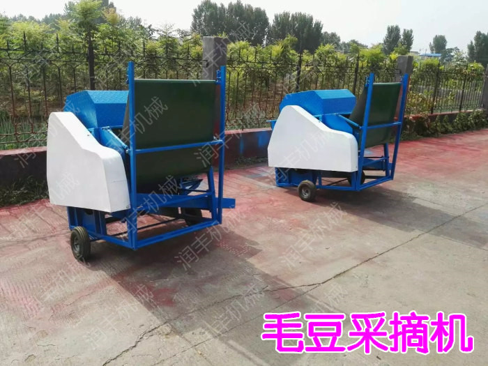 毛豆采摘機操作簡單、效率高、脫莢干凈、篩選較徹底,脫莢齒采用牛津軟材料制作,對人、對毛豆無損傷。使用該機器可以大大降低采摘毛豆的勞動強度、提高脫莢效率、降低工時、減少毛豆的采摘成本。
