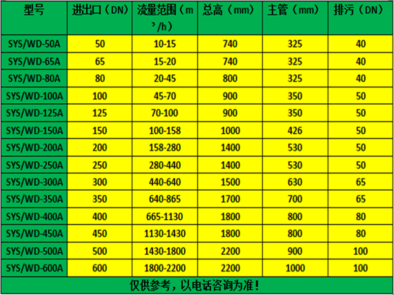 全程綜合水處理器技術(shù)參數(shù):