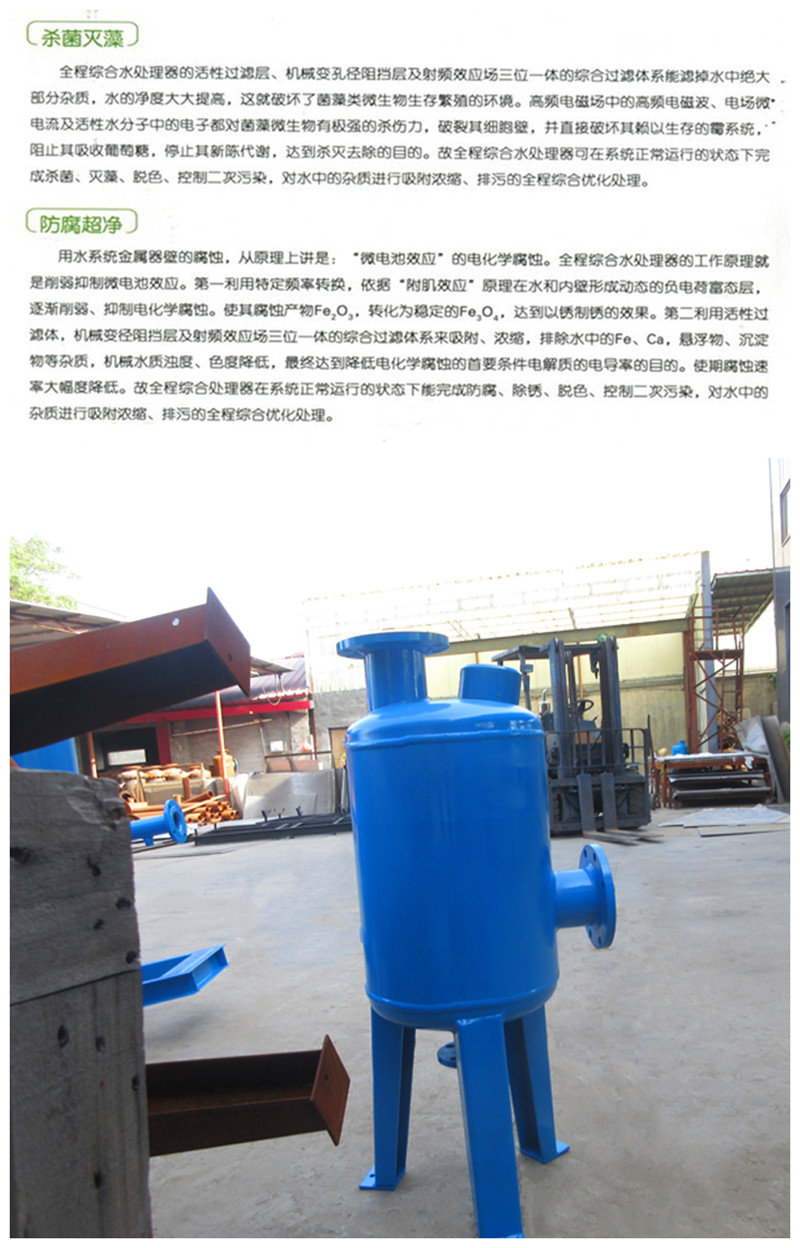 對(duì)于安裝位置較小、過濾精度要求不高的環(huán)境,安裝普通的全程綜合水處理器較為困難;這時(shí),可以選擇全程綜合水處理器的簡易體,即:直通型全程綜合水處理器。直通型全程綜合水處理器的功能跟普通的全程綜合水處理器完一致,同時(shí)也可以根據(jù)使用要求增加全自動(dòng)、智能型及物化等型式。sldgle