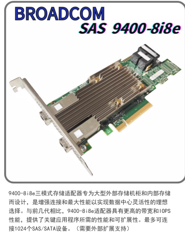Broadcom 9400-8I8E 05-50031-02005  SAS3408 SATA擴展 內(nèi)置+外置直通卡批發(fā)TEL:13910098771