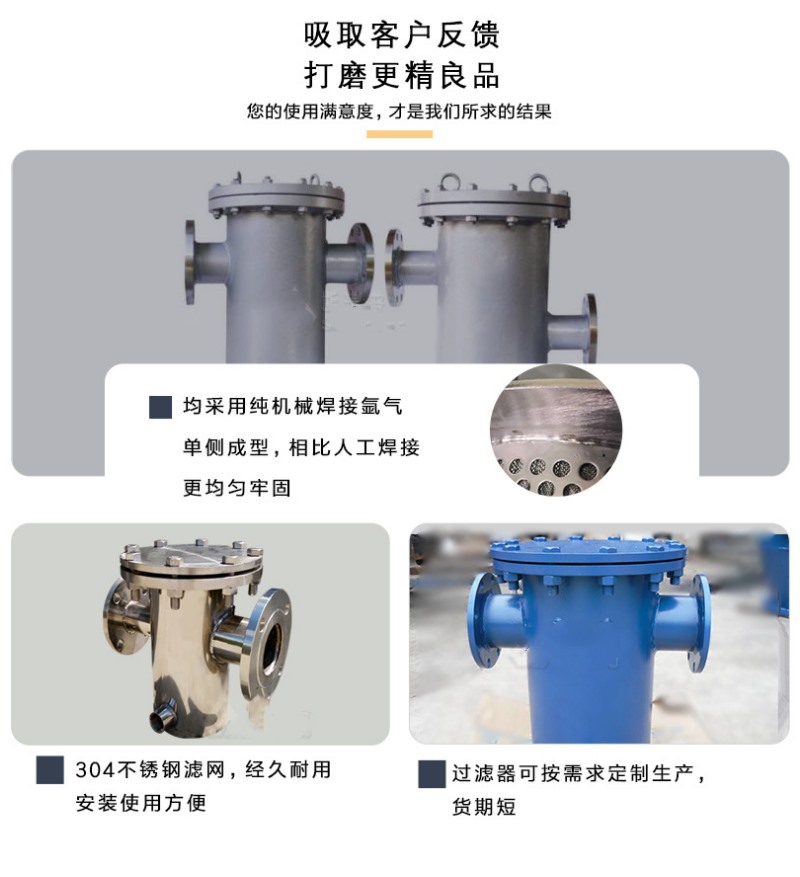 1. 毛發(fā)過濾器一般水平安裝,進(jìn)出口方向與閥體上的箭頭方向應(yīng)保持一致,適合流量比較大的流體輸送管道;