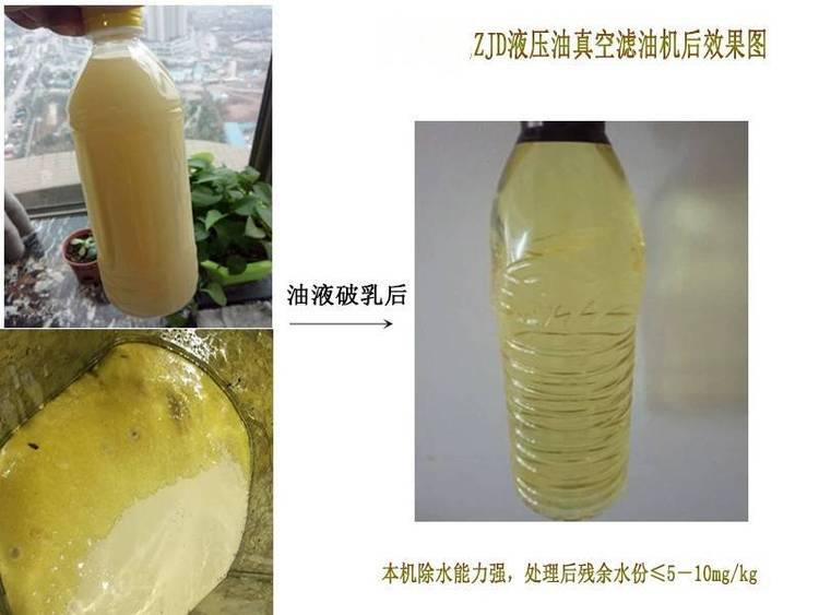 :本機(jī)處理后的油品乳化值低,含水量極少,雜質(zhì)精度高,完全可以在國內(nèi)外高液壓、潤滑設(shè)備中重新反復(fù)使用。