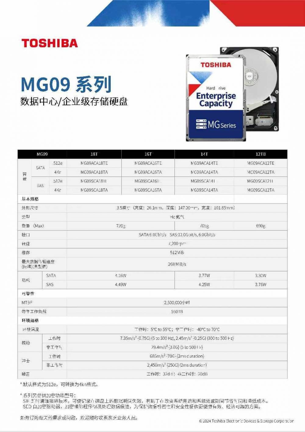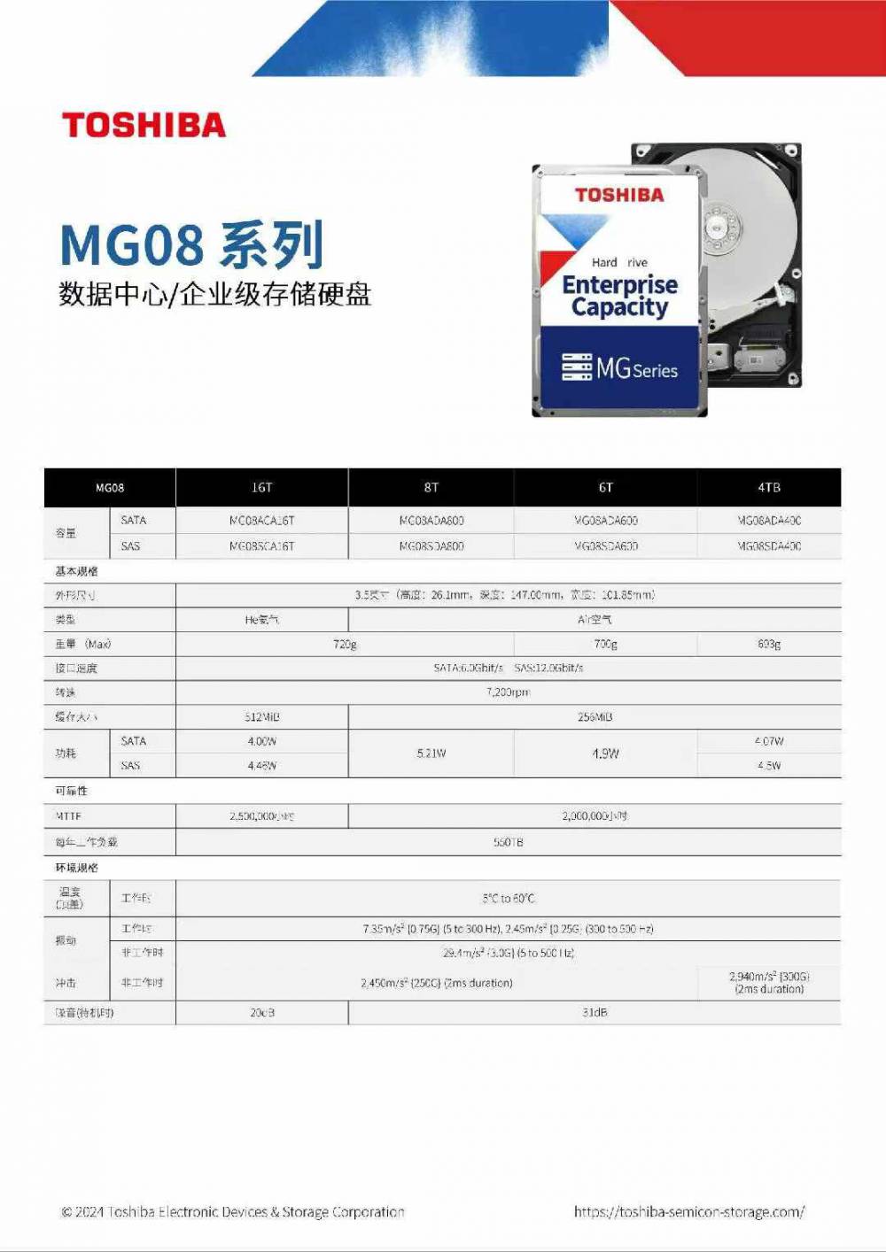 TOSHIBA 東芝MG08、MG09、MG10 系列數(shù)據(jù)中心 企業(yè)級存儲硬盤