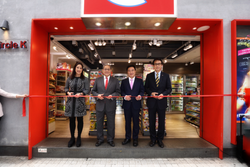 發(fā)布會現(xiàn)場,馮氏和京東雙方蒞臨現(xiàn)場的領(lǐng)導(dǎo)在circle k位于銅鑼灣的旗艦店舉行了剪彩儀式,標(biāo)志著香港第一個智能結(jié)算臺在線下零售門店中正式投入使用。