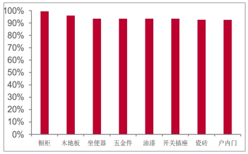 從相關(guān)文件規(guī)定來看,地面鋪裝已經(jīng)成為全裝房的標(biāo)配。結(jié)合實(shí)際情況,木地板日益成為全裝房地面鋪裝材料的首選,智研咨詢統(tǒng)計(jì)木地板在精裝房配置占比約95%(圖1)。如果到2020年,完成《建筑業(yè)發(fā)展十三五規(guī)劃》所規(guī)劃的新建住宅全裝修占比30%的目標(biāo),意味著木地板的新建住宅鋪裝率在30%以上。