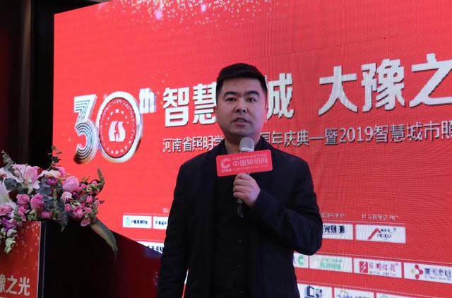 河南省泛光照明工程有限公司董事長杜紅偉在致辭中談到今年是他從事照明行業(yè)的第二十一個年頭??偨Y(jié)這二十一年,就是幸福并堅持著?;仡櫿麄€過程,最大的感受就是每一天都不容易但每一天都很充實。最后希望與自己的團隊以及所有照明人一起度過下一個二十一年。