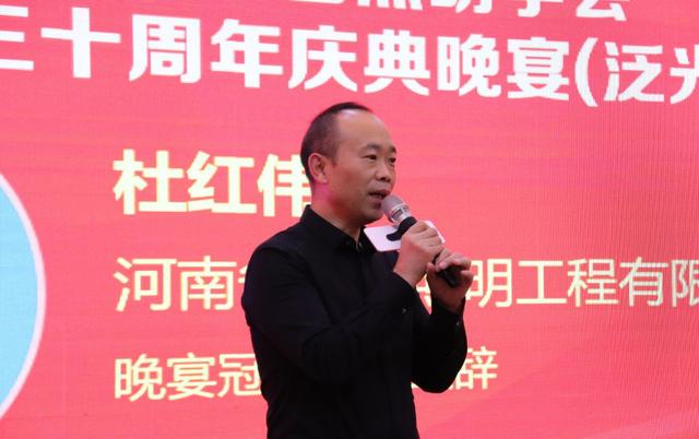 論壇結(jié)束后,由河南省泛光照明工程有限公司冠名的河南省照明學(xué)會成立三十周 年慶典晚宴精彩上演,與會嘉賓和與河南省照明學(xué)會的會員企業(yè)代表歡聚一堂,共同慶祝。河南省照明學(xué)會副理事長姚凱、河南省泛光照明工程有限公司董事長杜紅偉分別致感謝辭。