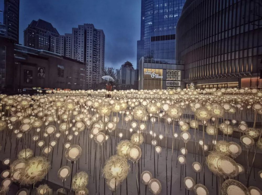 夜幕降臨,港匯恒隆廣場頓時變成一片“燈?!保?0000盞蒲公英燈共同亮起,夢幻燈海如夢似幻,恍如漫天花絮飄舞。一眼望去,廣場前的蒲公英燈海與徐家匯的景色遙相呼應,美不勝收,為徐家匯商圈再添一抹溫馨亮色。