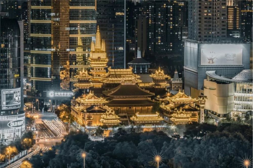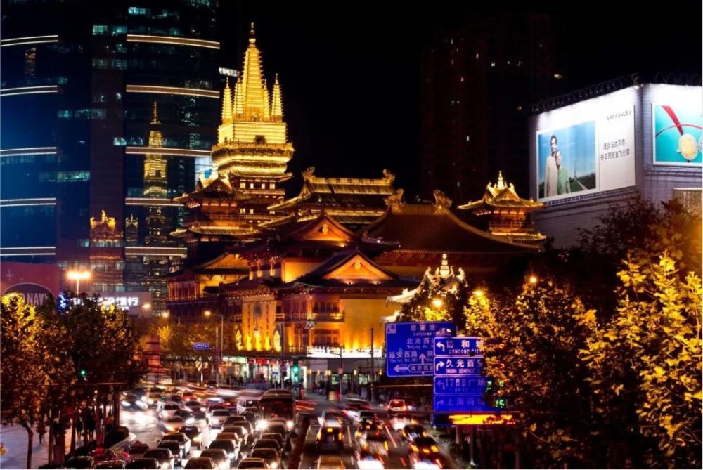 靜安寺是靜安區(qū)的地標性建筑之一。其暖白色燈光與周圍商區(qū)燈光相互交映,仿佛一出壯麗的燈景大片。