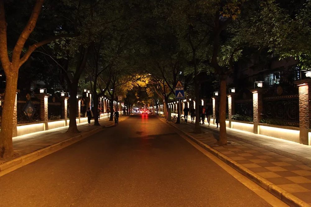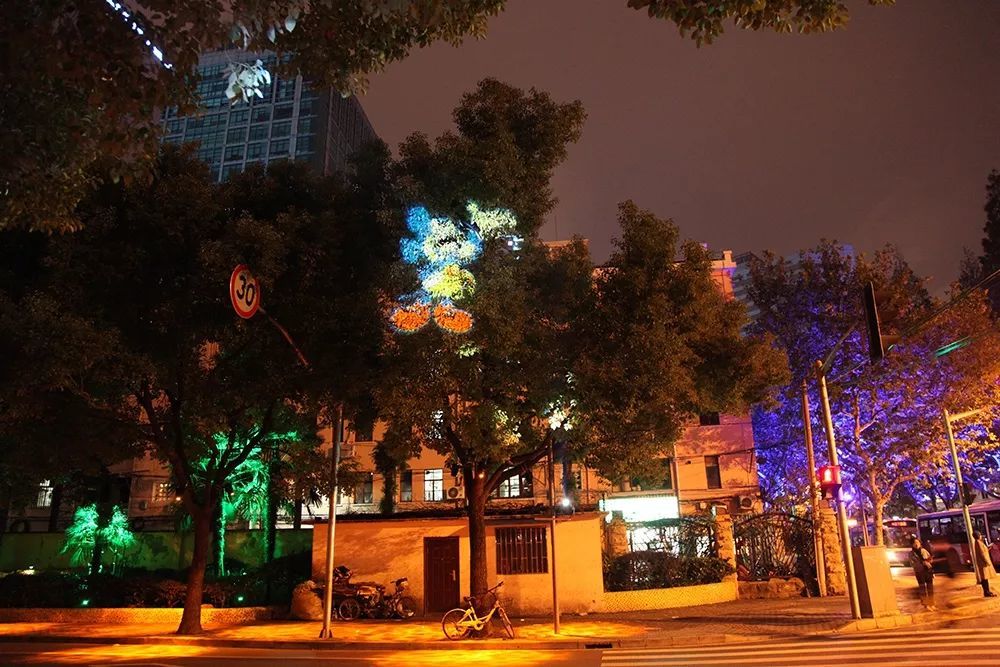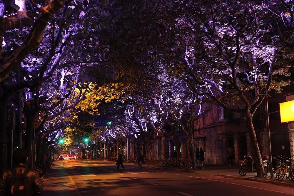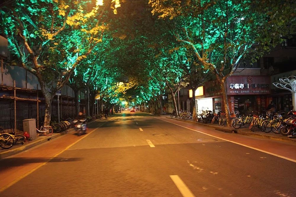 長寧區(qū)行道樹的七彩燈光