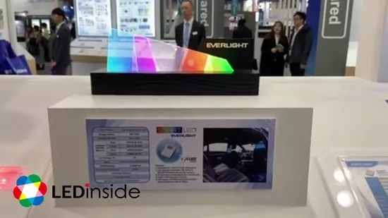 億光最新推出的el smartled系列,將智慧驅(qū)動(dòng)ic整合進(jìn)入rgb封裝中,能夠獨(dú)立調(diào)控各色led位置及亮度,提供多種色彩組合,滿足不同的車內(nèi)照明需求,在展會(huì)中呈現(xiàn)的效果相當(dāng)吸睛。