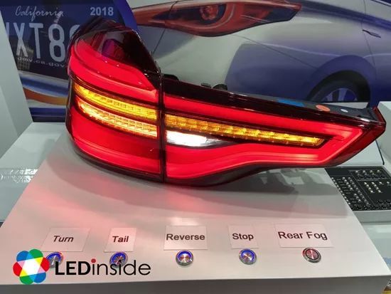 dominant的車尾燈模塊結(jié)合驅(qū)動(dòng),尾燈內(nèi)的剎車燈、轉(zhuǎn)向燈、霧燈等分別點(diǎn)亮的效果分明。