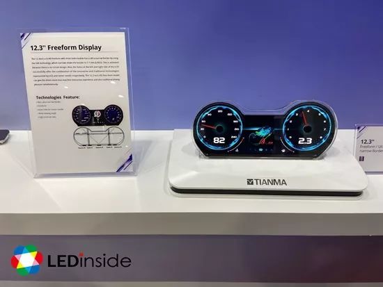 來(lái)自中國(guó)大陸的天馬微電子今年展出多款車用顯示器,不但尺寸加大,也出現(xiàn)曲面車用顯示,還有跳脫方形設(shè)計(jì)的異形切割顯示設(shè)計(jì)。