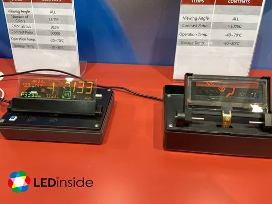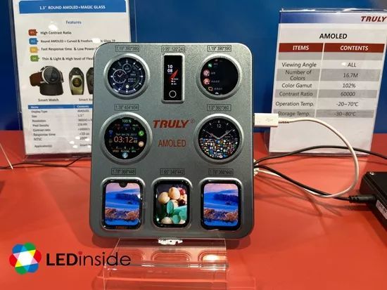 信利光電則展示tft、amoled及pmoled等多款顯示應(yīng)用,包含曲面跟大尺寸的整合性顯示產(chǎn)品,緊追著當(dāng)前趨勢(shì)?,F(xiàn)場(chǎng)的小尺寸amoled顯示對(duì)比效果突出,畫面鮮艷清晰,應(yīng)用于穿戴式產(chǎn)品。透明的pmoled顯示器畫面刷新度快,顯示效果也十分突出。