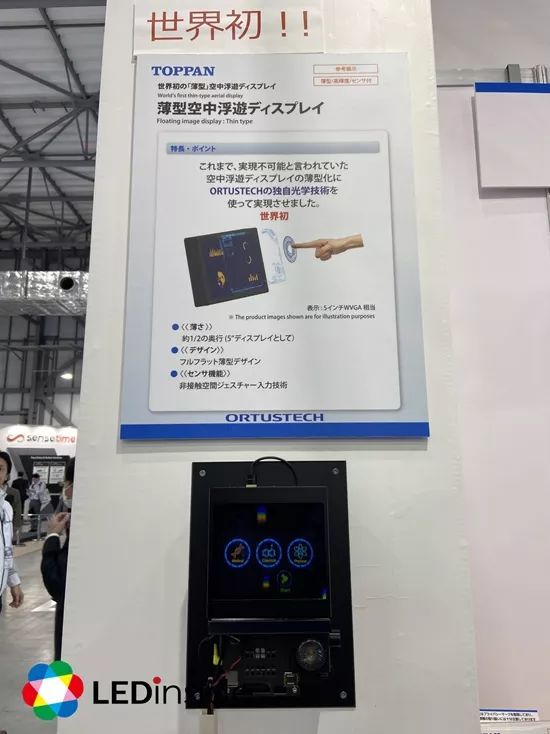 去年在展上已有廠商展出,而今年則有更多l(xiāng)ed廠商及顯示廠商推出相關(guān)應(yīng)用;ortustech的多款漂浮屏幕利用多重的折射以及反射技術(shù),將液晶顯示屏幕映在空氣中,再搭配手勢(shì)感測(cè)下指令。