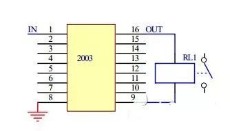 當(dāng)2003輸入端為高電平時(shí),對(duì)應(yīng)的輸出口輸出低電平,繼電器線圈兩端通電,繼電器觸點(diǎn)吸合;