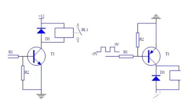 當(dāng)晶體管用來驅(qū)動(dòng)繼電器時(shí),必須將晶體管的發(fā)射極接地。具體電路如下: