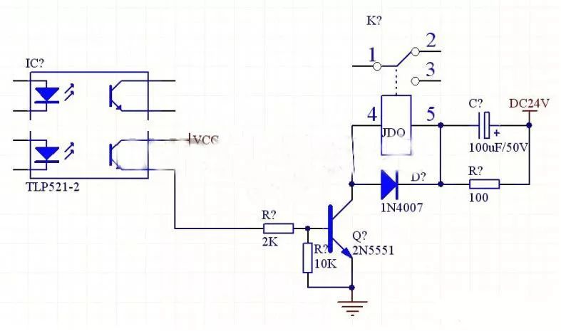當(dāng)輸入低電平時(shí),晶體管t1截止,繼電器線圈斷電,觸點(diǎn)斷開。