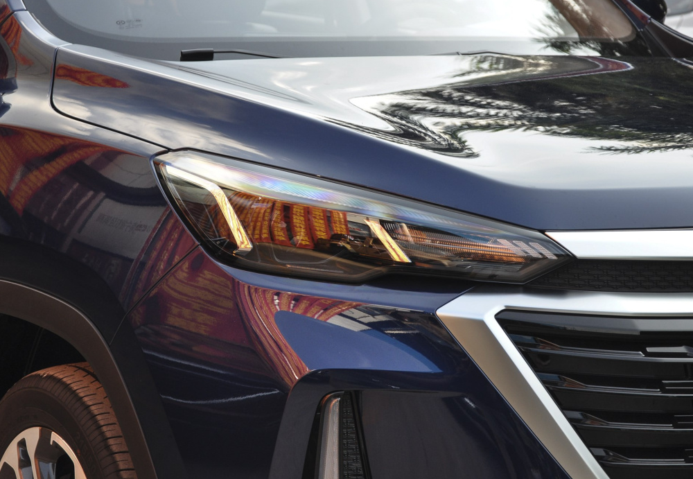 beijing智達(dá)x3兩側(cè)造型飽滿犀利的大燈,通過(guò)銀色鍍鉻飾條相連接,并且中間搭配由北京汽車獨(dú)特的車標(biāo),整體辨識(shí)度極為出色。beijing智達(dá)x3全系標(biāo)配led大燈,兩側(cè)的大燈內(nèi)部采用的是205顆天幕星云led光源設(shè)計(jì),提升了整個(gè)前臉部分的檔次。下方左右兩側(cè)還配備有回旋鏢樣式的led日間行車燈,使得整個(gè)前臉更加動(dòng)感時(shí)尚。