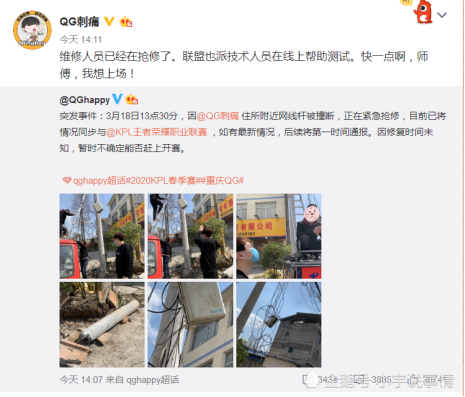 究竟是怎么回事呢?原來在hurt比賽的當(dāng)天,他們家的網(wǎng)線桿竟然被撞斷了,導(dǎo)致刺痛無法連網(wǎng),如果在比賽開始前沒有修好的話刺痛就會失去這次首發(fā)的機會,不得不說刺痛的運氣真的是差,平時直播一點兒問題都沒有,沒想到一到比賽就發(fā)生這樣的事情,為了確保自己能夠順利參加比賽,刺痛還到現(xiàn)場做一些自己力所能及的事情,爭取能夠早點修好。