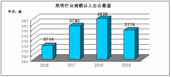 中國照明行業(yè)規(guī)模以上企業(yè)數(shù)量自2015年起呈現(xiàn)了增幅下滑的態(tài)勢,到了2019年則出現(xiàn)了負(fù)增長,同比2018年的2820家下滑1.60%至2775家,一方面新進(jìn)入的企業(yè)在減少,另一方面部分經(jīng)營不善的企業(yè)在逐步退出。