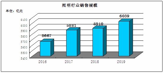 根據(jù)照明行業(yè)規(guī)模以上企業(yè)營收及所占比重,測算2019年我國照明行業(yè)市場規(guī)模達(dá)到6039億元。
