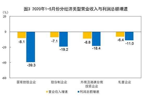 1-5月份,規(guī)模以上工業(yè)企業(yè)中,國有控股企業(yè)實(shí)現(xiàn)利潤總額4404.2億元,同比下降39.3%;股份制企業(yè)實(shí)現(xiàn)利潤總額13478.8億元,下降19.2%;外商及港澳臺(tái)商投資企業(yè)實(shí)現(xiàn)利潤總額4659.2億元,下降18.4%;私營企業(yè)實(shí)現(xiàn)利潤總額5607.3億元,下降11.0%。