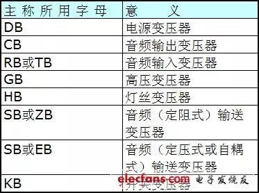 (2)低頻變壓器的型號命名方法 低頻變壓器的型號命名法由三部分組成: