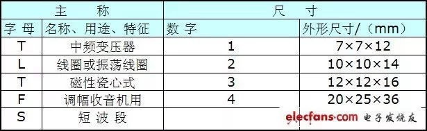表所示中頻變壓器型號主稱用字母與外形尺寸用數(shù)字的意義表
