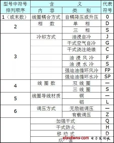 電力變壓器產(chǎn)品型號其它的字母排列順序及涵義。