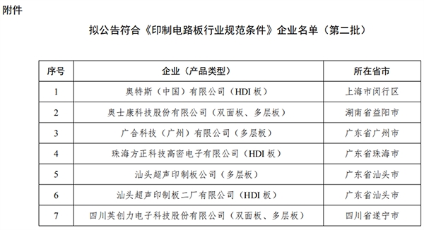 工信部公告第二批《印制電路板行業(yè)規(guī)范條件》企業(yè)名單