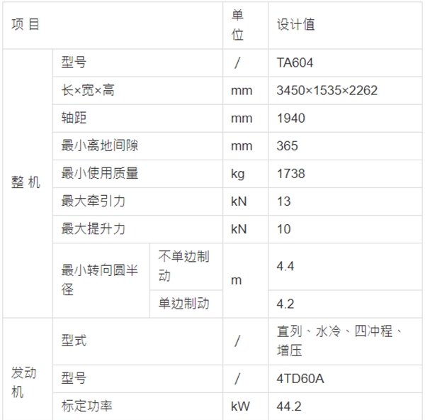 五征TA604輪式拖拉機(jī)技術(shù)參數(shù)