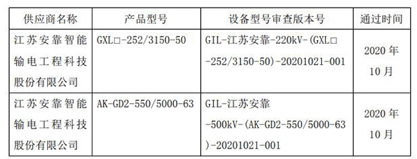 機(jī)電之家網(wǎng)獲悉,江蘇安靠智能輸電工程科技股份有限公司日前發(fā)布公告稱,近日,中國(guó)南方電網(wǎng)供應(yīng)鏈統(tǒng)一服務(wù)平臺(tái)公布了《關(guān)于110kV-500kV組合電器和斷路器、110kV-500kV變壓器及220kV-500kV GIL設(shè)備型號(hào)審查結(jié)果的公告》,中國(guó)南方電網(wǎng)本次審查通過(guò)的220kV GIL設(shè)備型號(hào)供應(yīng)商共有三家,江蘇安靠智能輸電工程科技股份有限公司為其中一家;中國(guó)南方電網(wǎng)本次審查通過(guò)的500kV GIL設(shè)備型號(hào)供應(yīng)商共有四家,江蘇安靠智能輸電工程科技股份有限公司為其中一家。具體情況如下: