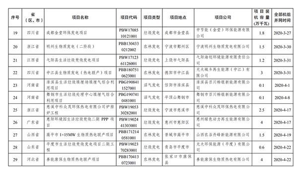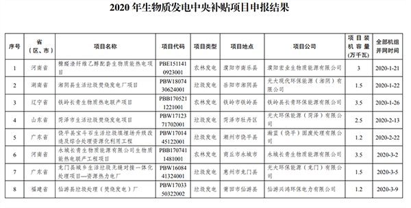 公布2020年生物質(zhì)發(fā)電中央補貼項目