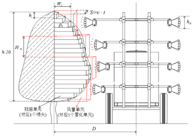 果樹樹冠是一個(gè)立體空間的靶標(biāo),冠層內(nèi)部結(jié)構(gòu)與邊界輪廓具有多邊無序的特點(diǎn)。不同生長期、不同部位的枝葉茂密程度與葉面積指數(shù)并不相同,最理想的施藥效果是噴霧機(jī)輸出的風(fēng)量和噴霧量與果樹不同部位的冠層結(jié)構(gòu)相匹配,實(shí)現(xiàn)仿形噴霧效果,即降低噴霧作業(yè)過程中農(nóng)藥霧滴飄移與流失,提高農(nóng)藥有效利用率。